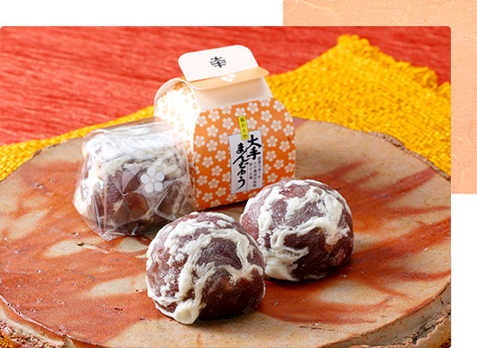 餡につけた三筋の形は清流、白いお餅は川底の小石を