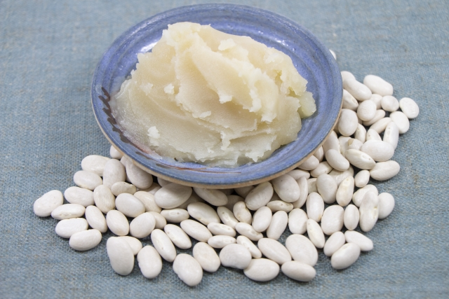 白インゲン豆や白ササゲ豆、白小豆などの白い豆類を原料にした 白あんが特徴。つぶをなくしペースト状にしたこしあんが一般的。